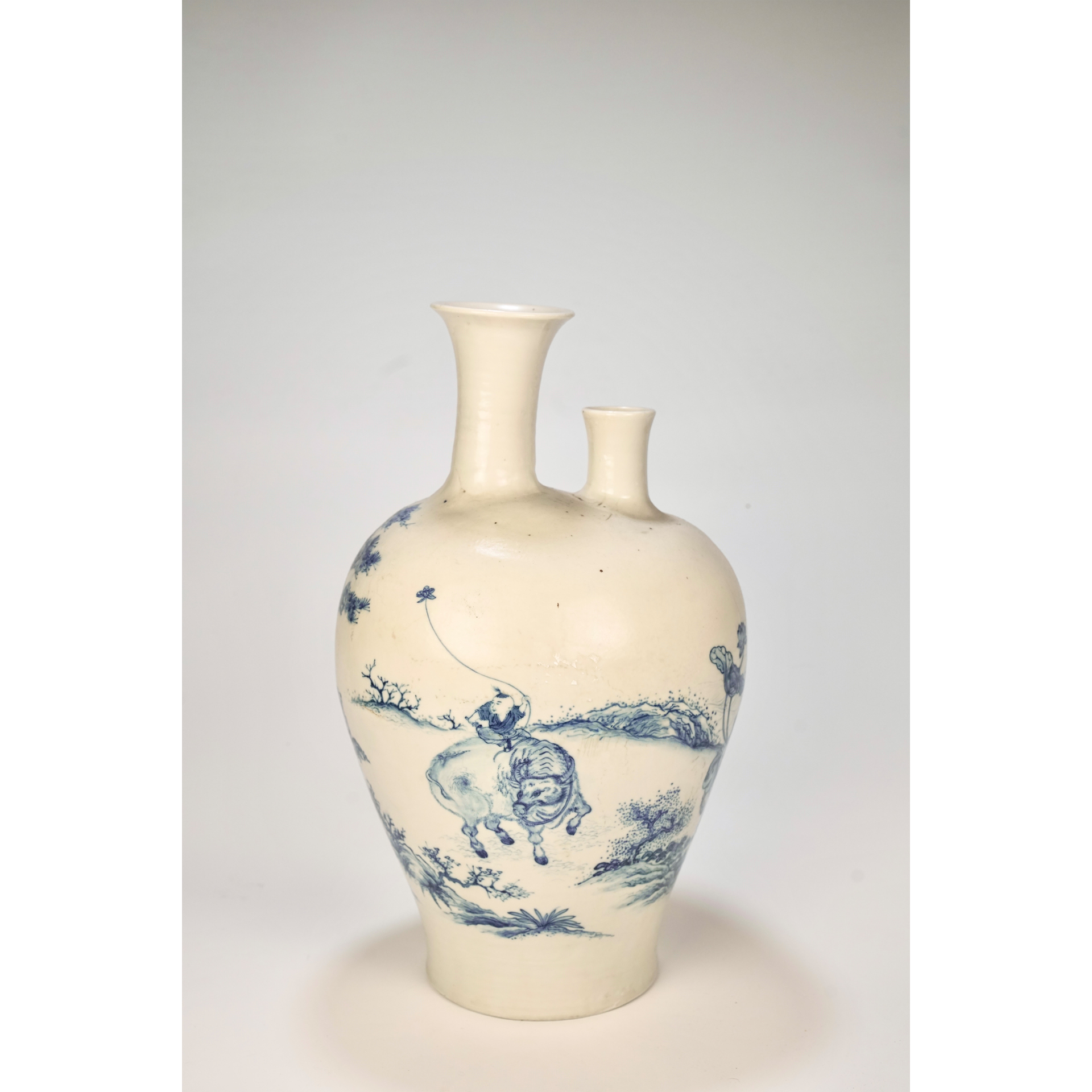LOT 090 A large 19th-century Chinese blue-and-white double-mouthed porcelain vase