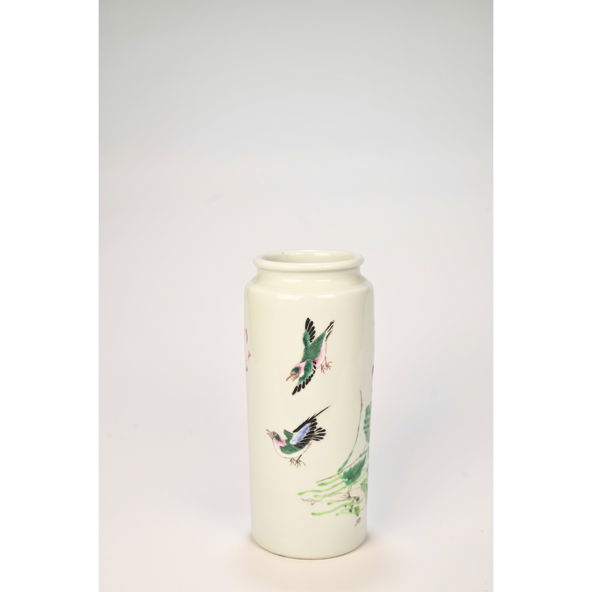 LOT 091 A Chinese Qianlong-period (1736-1795) famille rose porcelain vase decorated with flowers and waterfowl