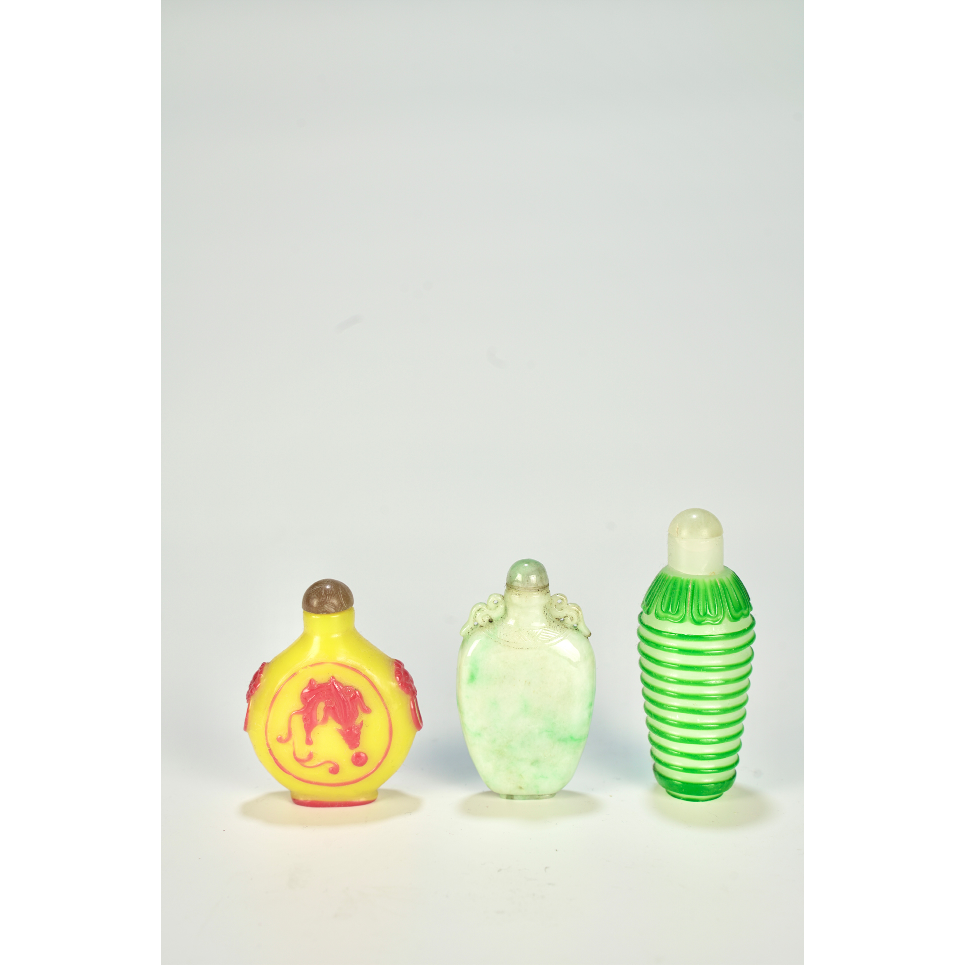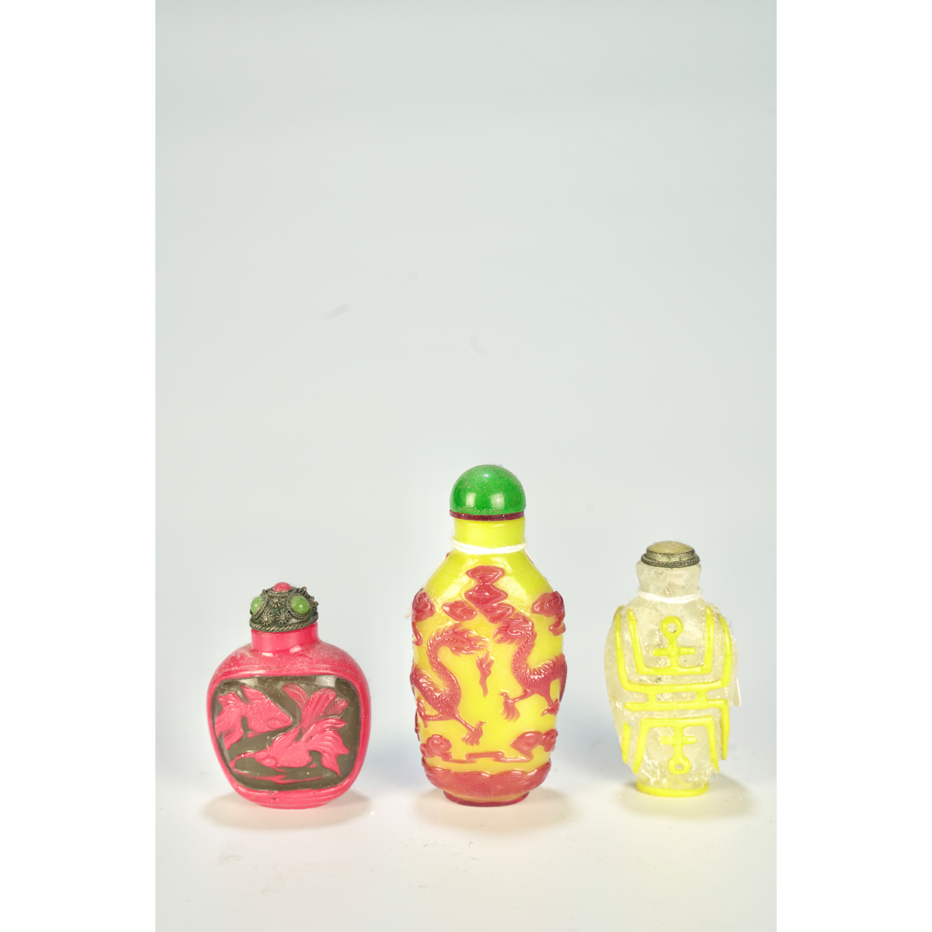 LOT 094 3 19th-century Chinese colored glass snuff bottles