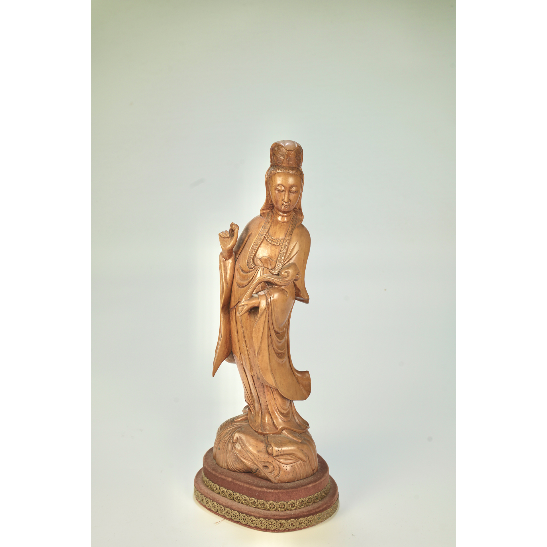 LOT 096 A 19th-century Chinese wood-carved Guanyin (Avalokiteshvara) figure