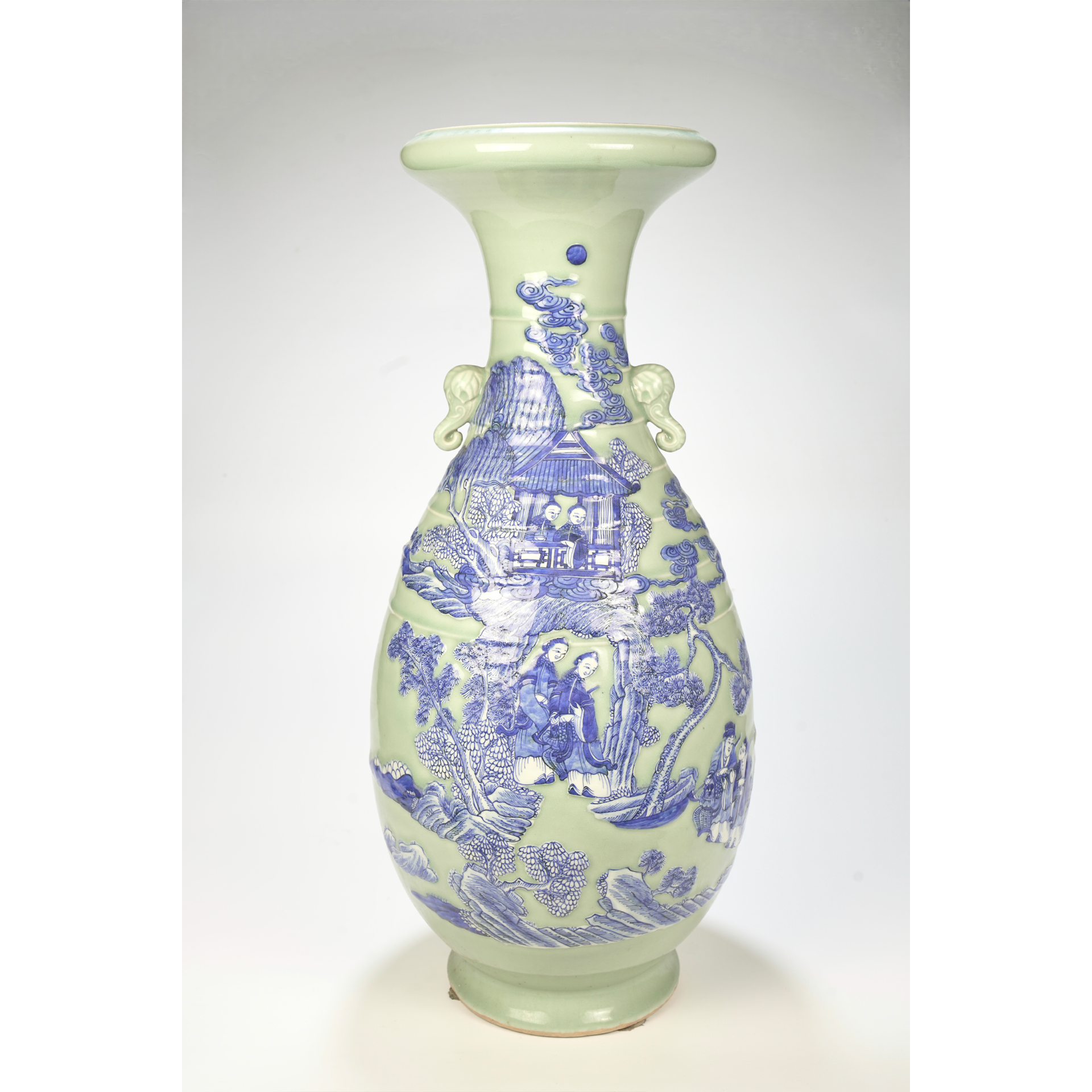 LOT 097 A large 19th-century Chinese blue-and-white porcelain vase decorated with figures and courtyards