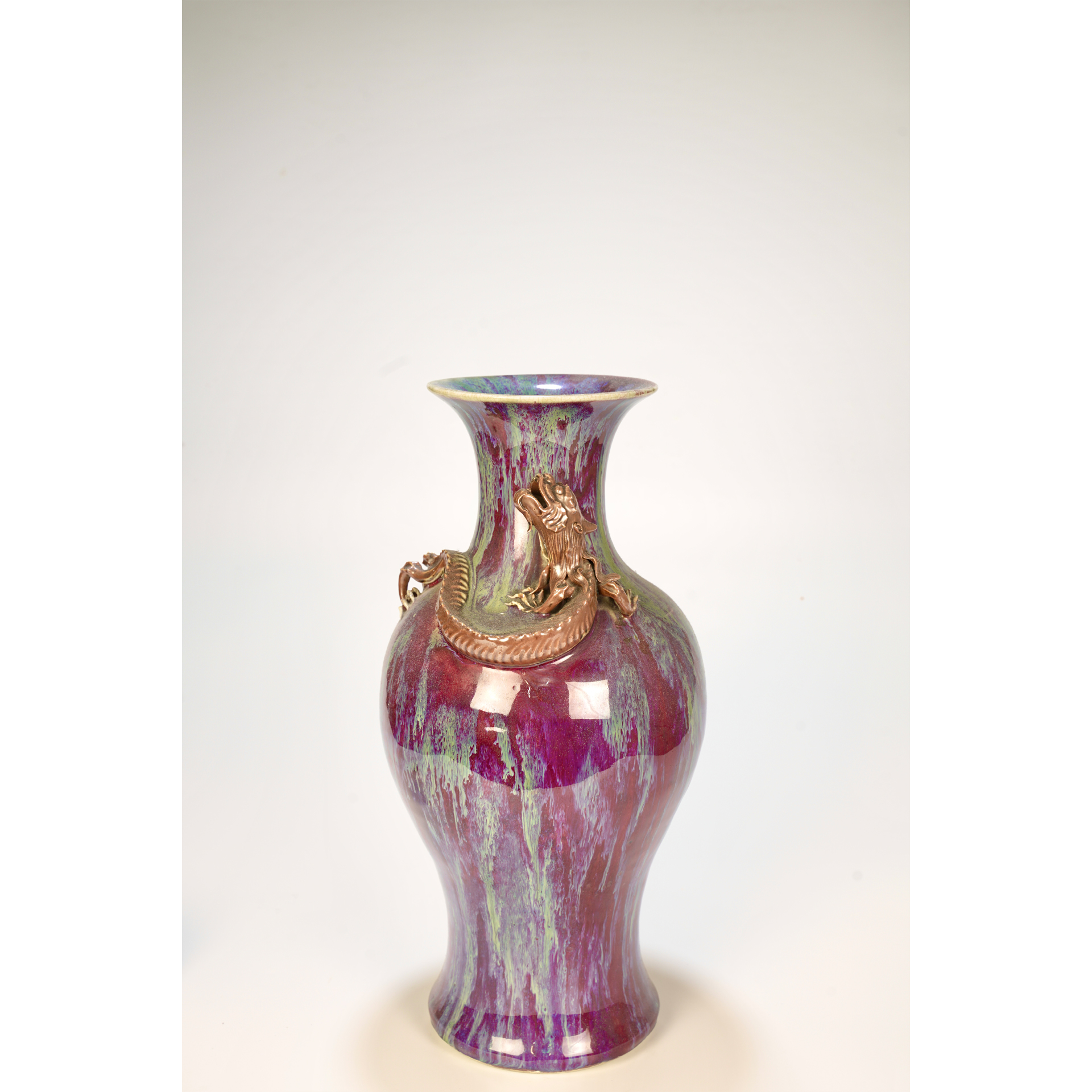 LOT 104 A 19th-century Chinese red porcelain vase with a dragon mounted on the neck