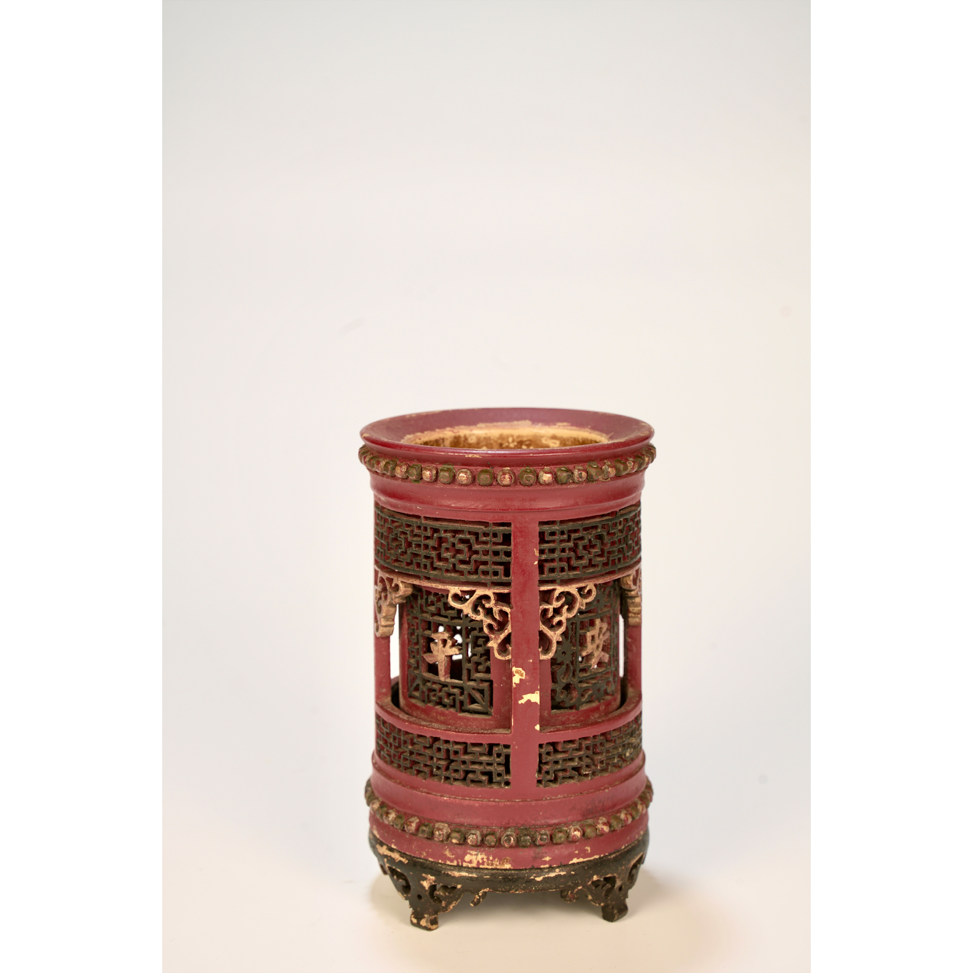LOT 107 A 19th-century Chinese red-lacquered openwork brush pot