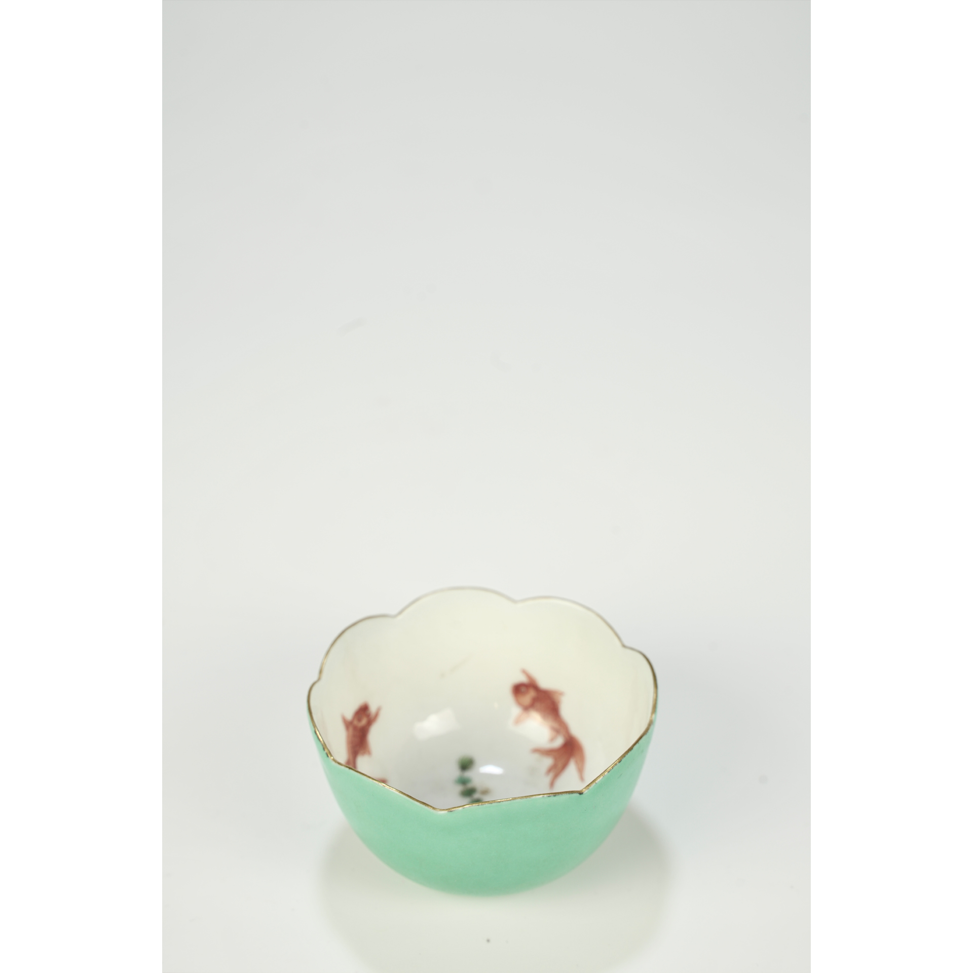 LOT 109 A 19th-century Chinese green porcelain teacup with 3 red fish decorated inside
