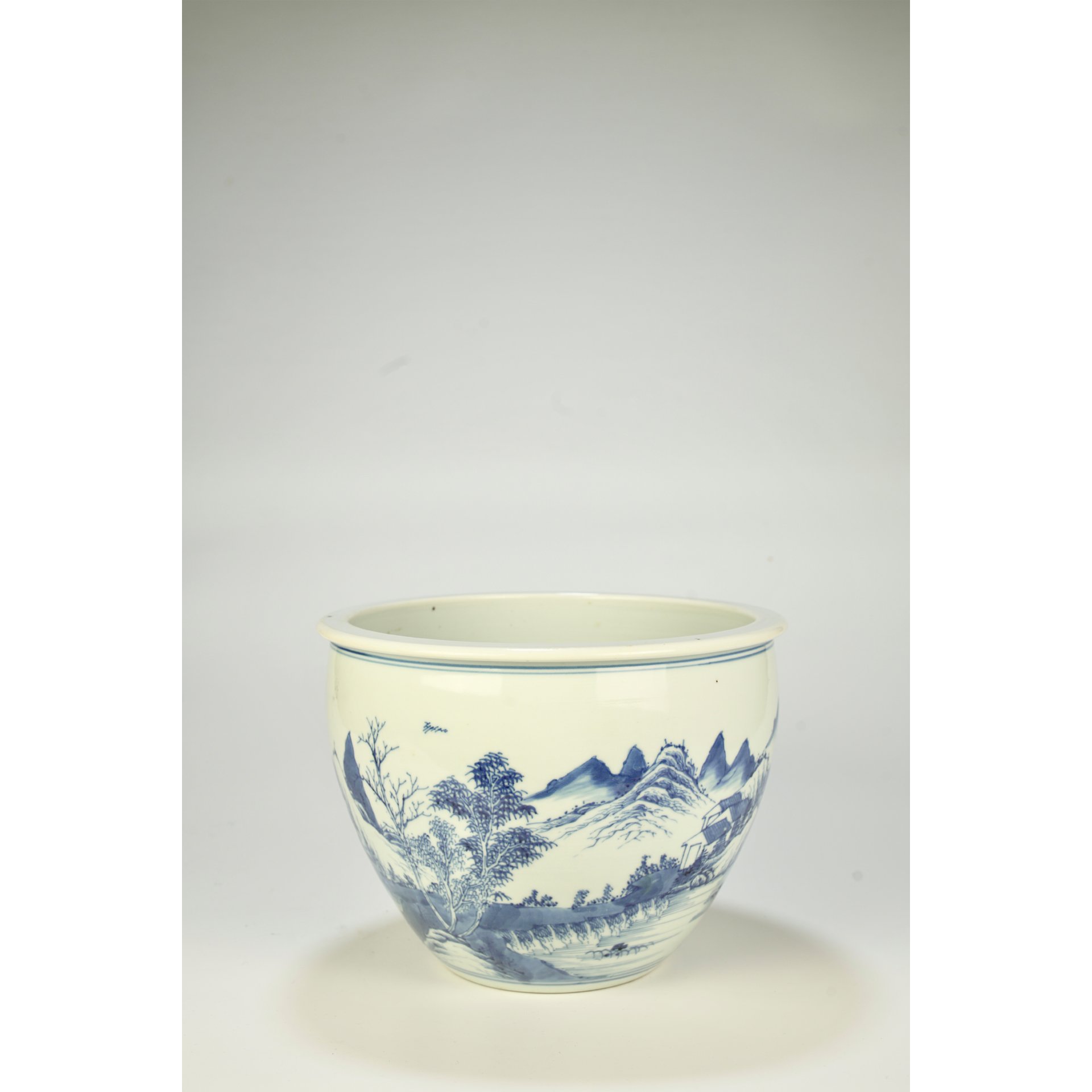 LOT 112 A Chinese Kangxi-period (1662-1722) blue-and-white porcelain jar decorated with landscapes
