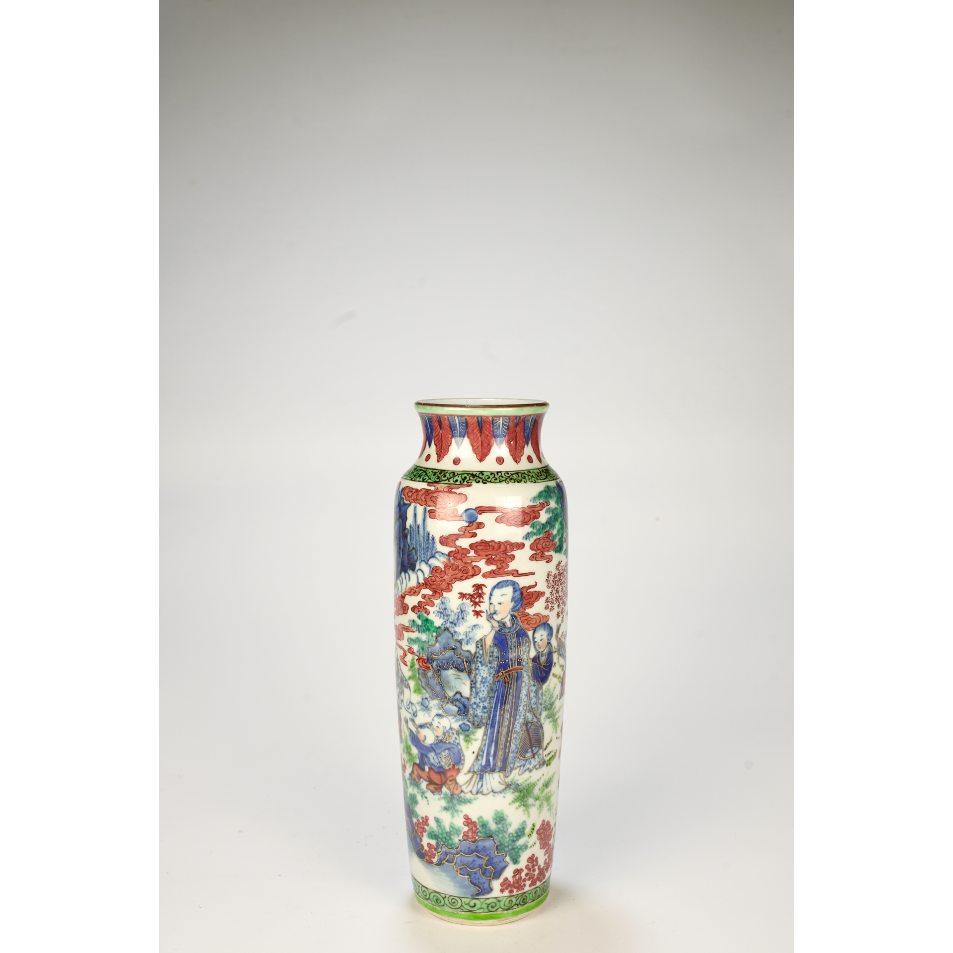 LOT 121 A Chinese Kangxi-period export blue-and-white porcelain vase with red enamel, decorated with children and noble ladies