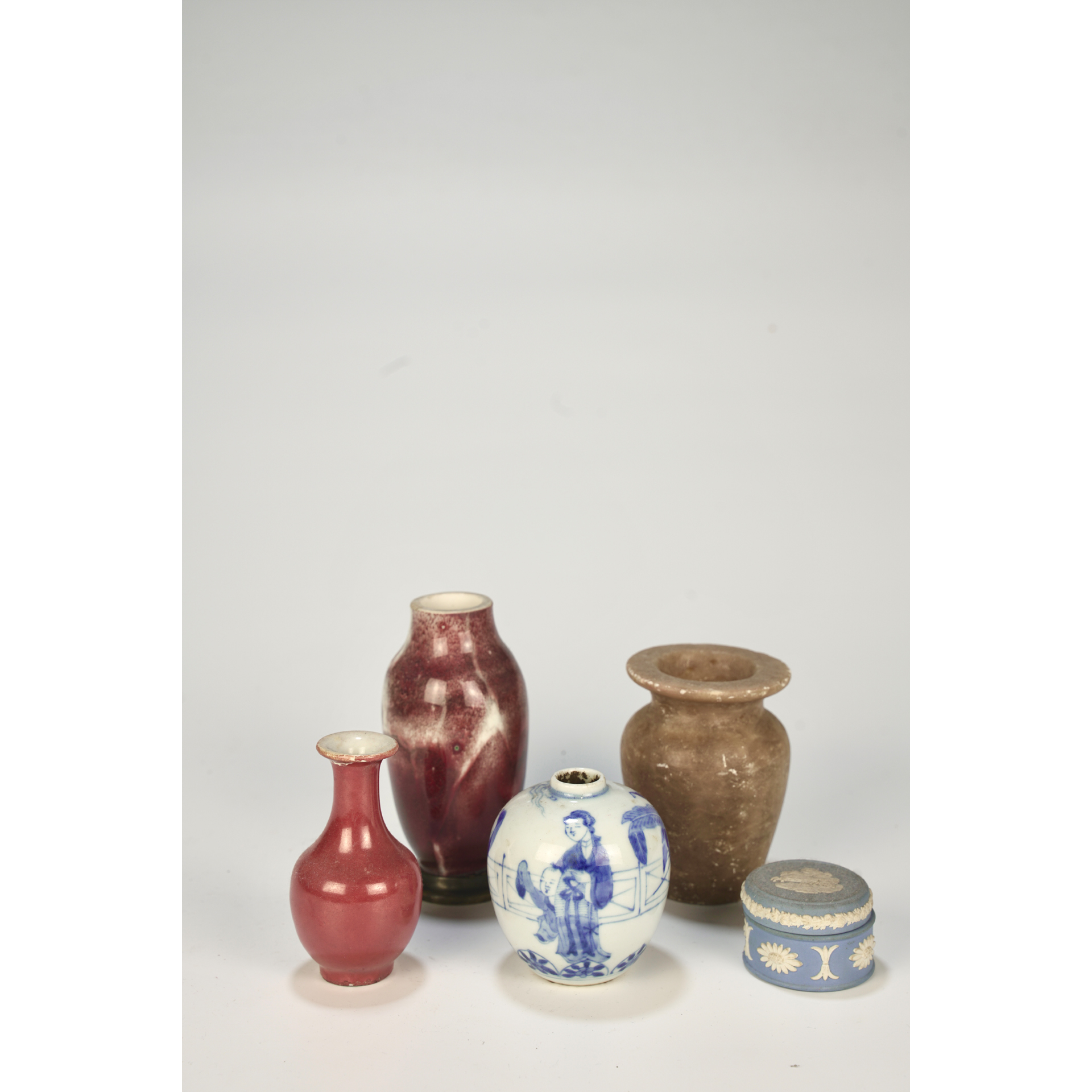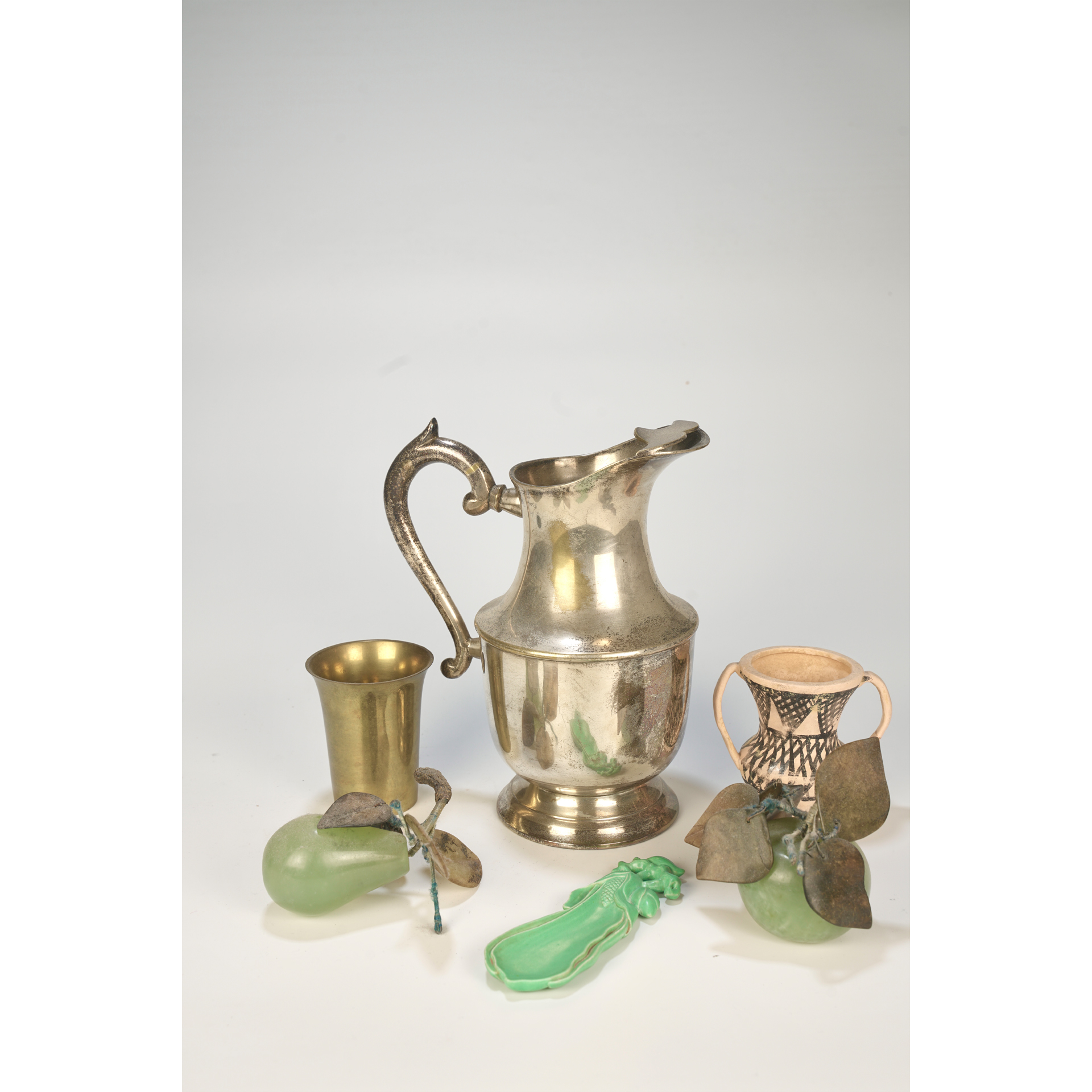 LOT 123 6 pieces of old Chinese porcelain, old jade, old pottery, and metalware in total