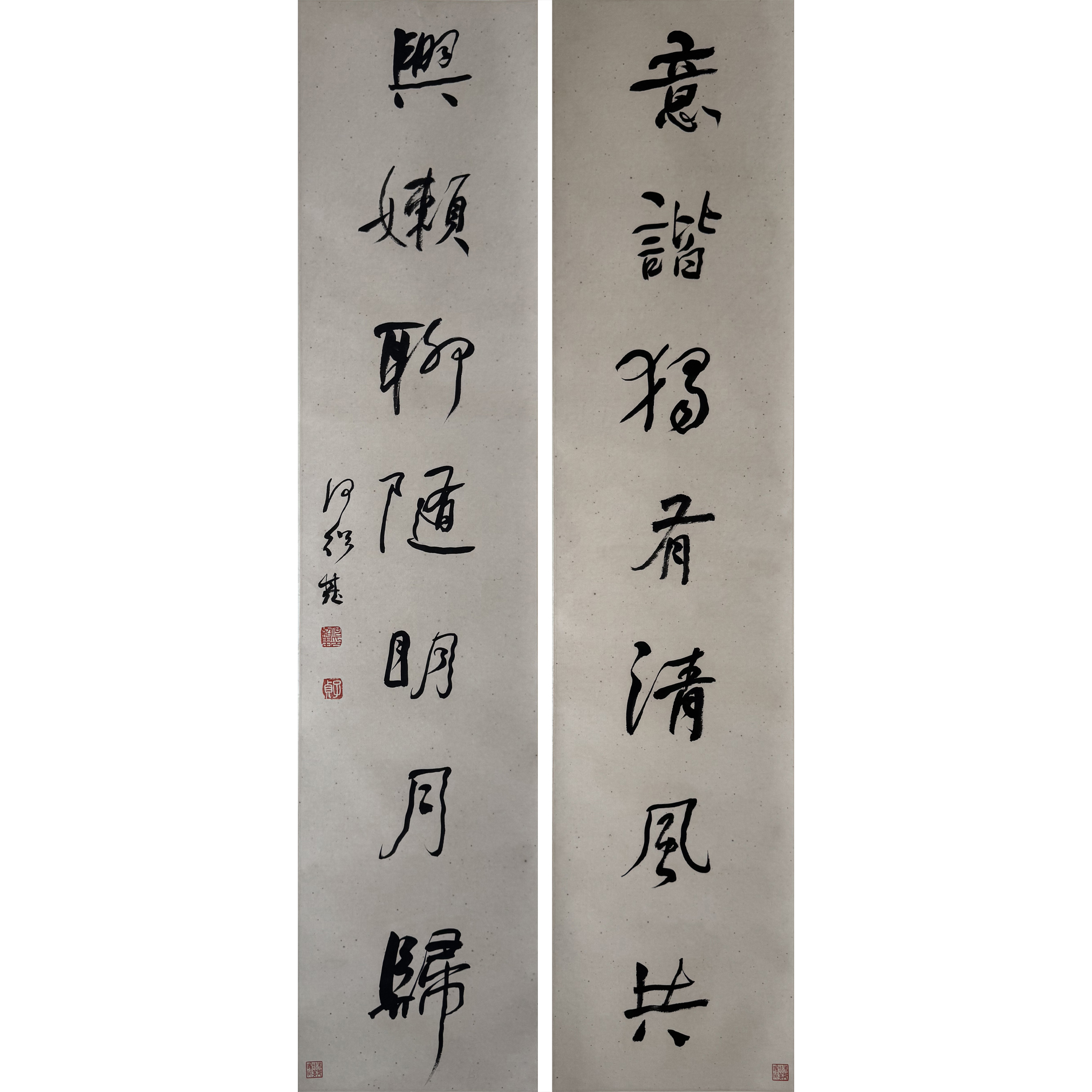 Lot 092 He Shaoji, "Seven-Character Couplet Calligraphy"