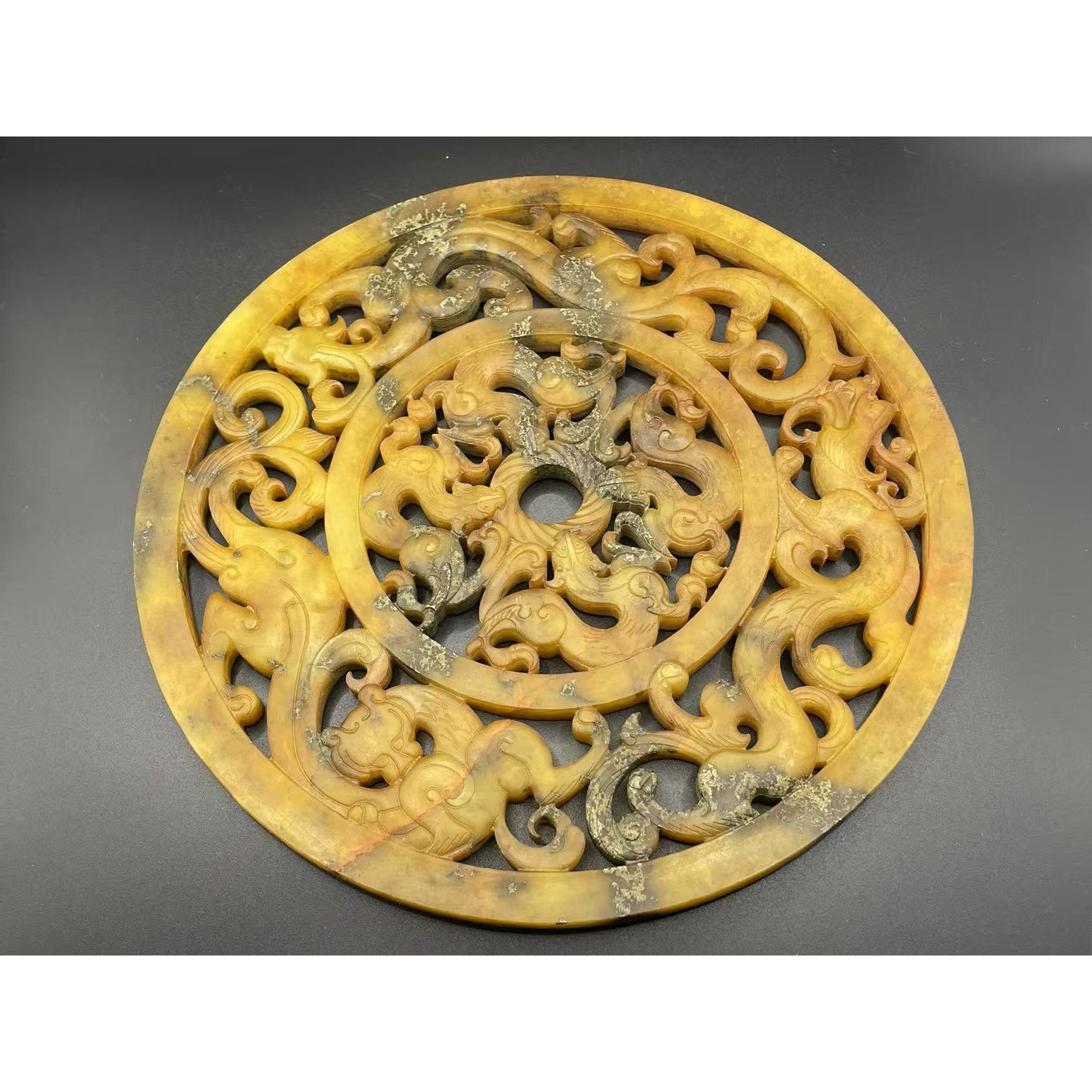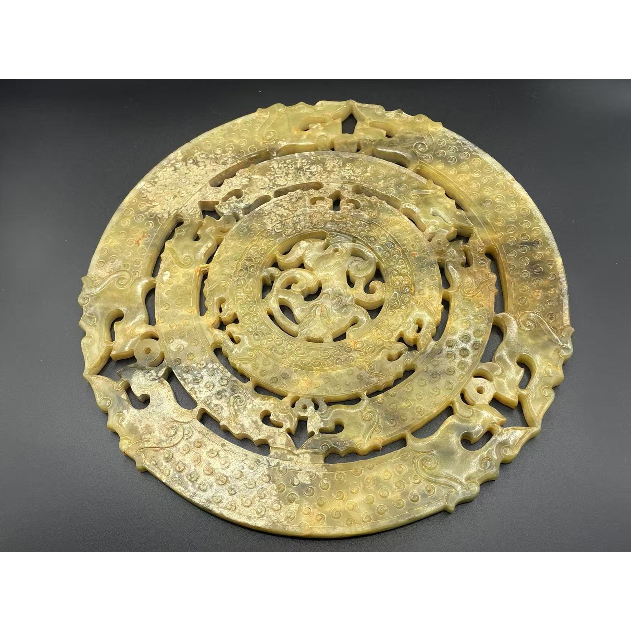 Lot 099 Ancient, "Hollowed-Out Jade Bi with Beast Body"