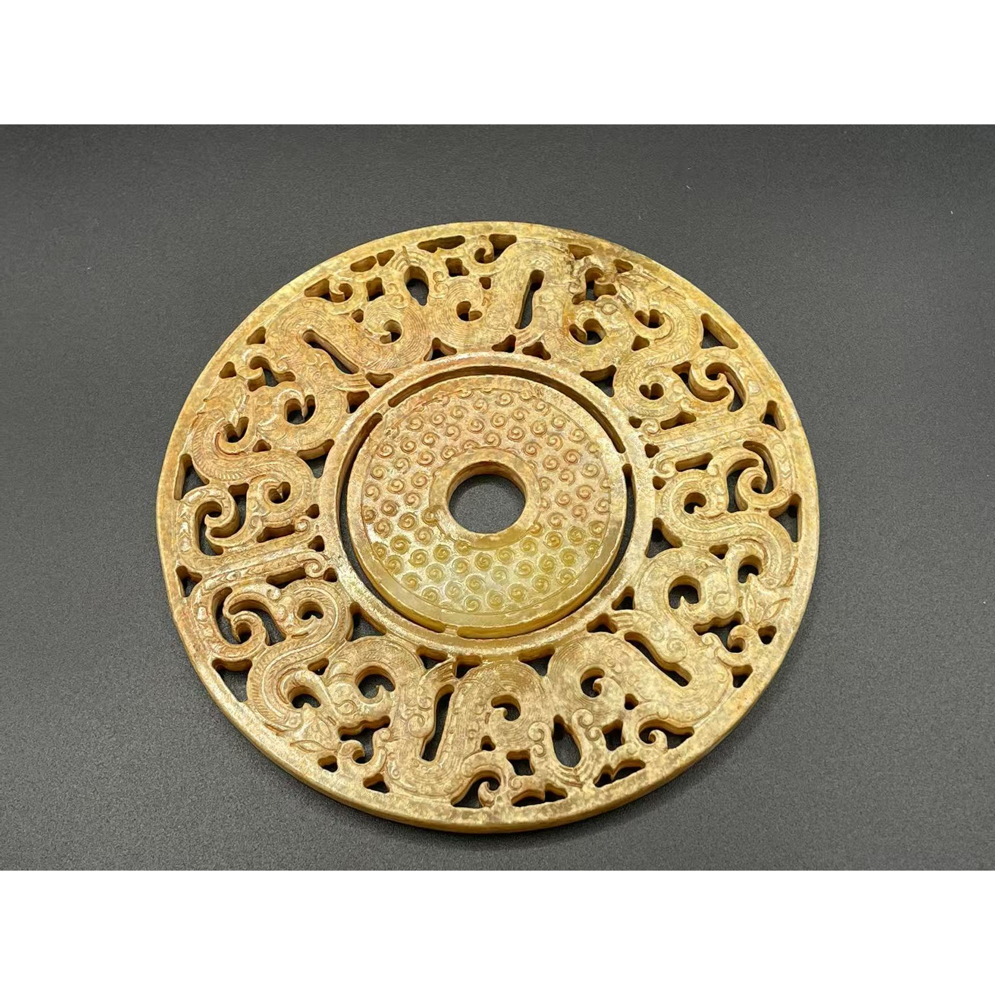 Lot 105 Ancient, "Hollowed-Out Jade Bi with Human Face and Dragon"
