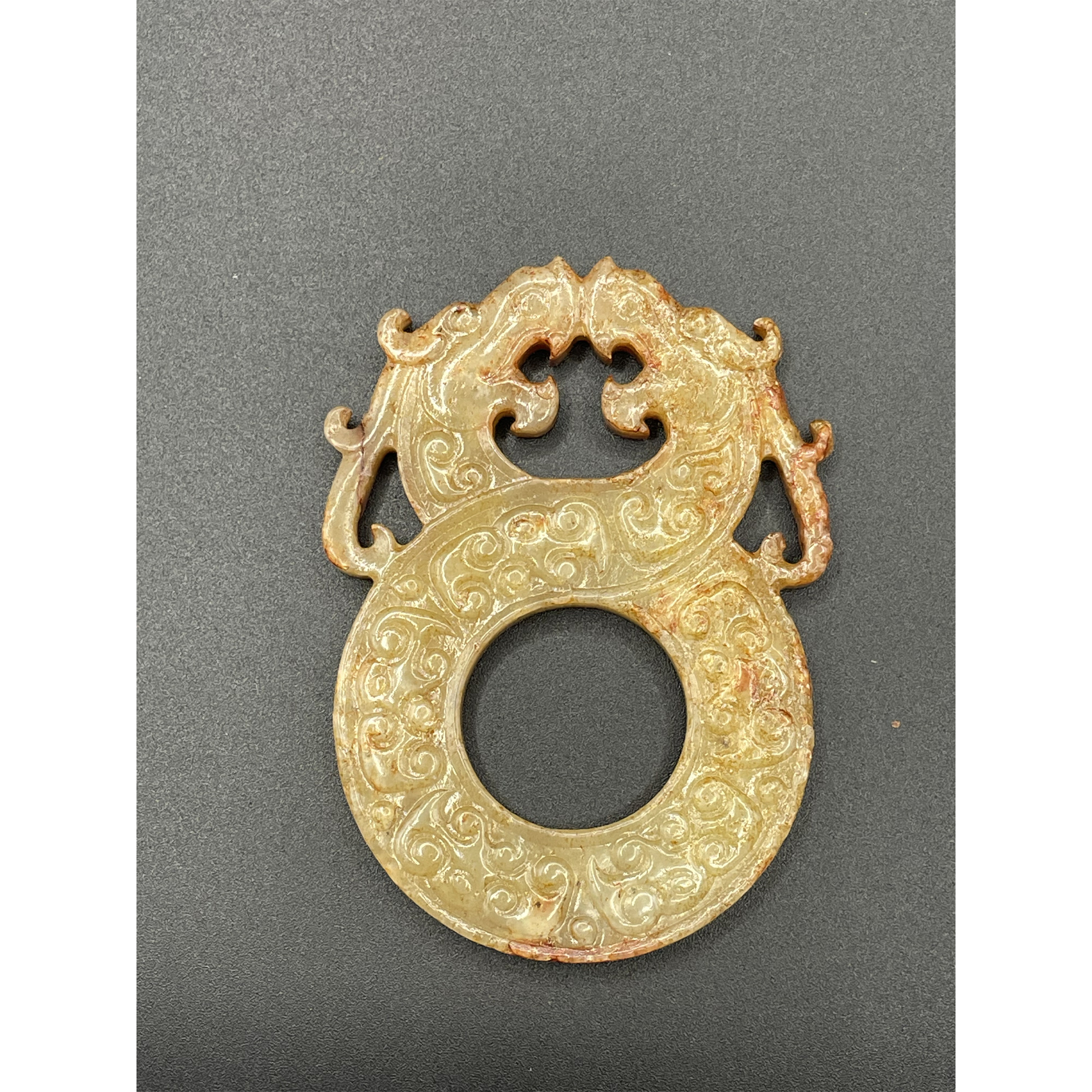 Lot 107 Ancient, "Jade Bi with Double-Headed Dragon Ring"