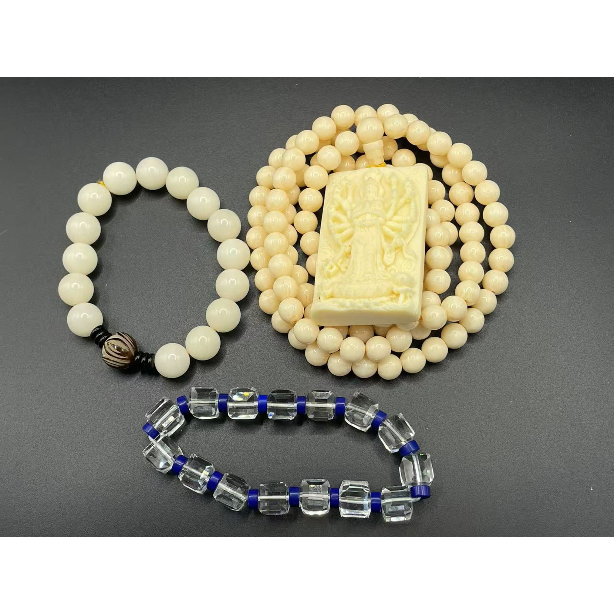 Lot 124 "Ivory Nut Necklace; Crystal Bracelet; Bodhi Bracelet"