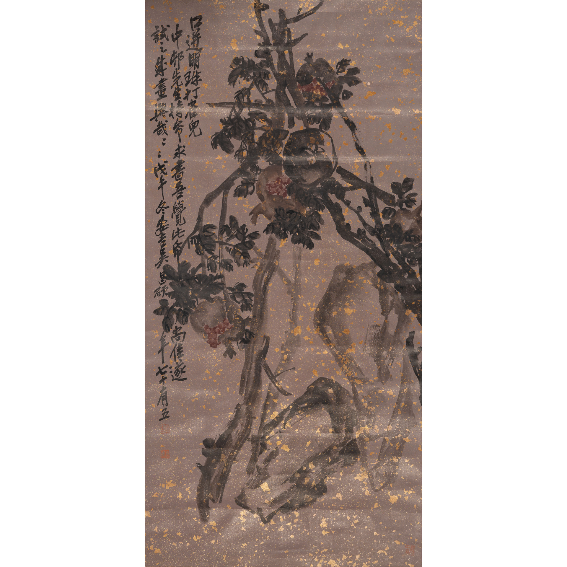 LOT 045 Wu Changshuo, Painting of Pomegranates, Ingesting Pearls