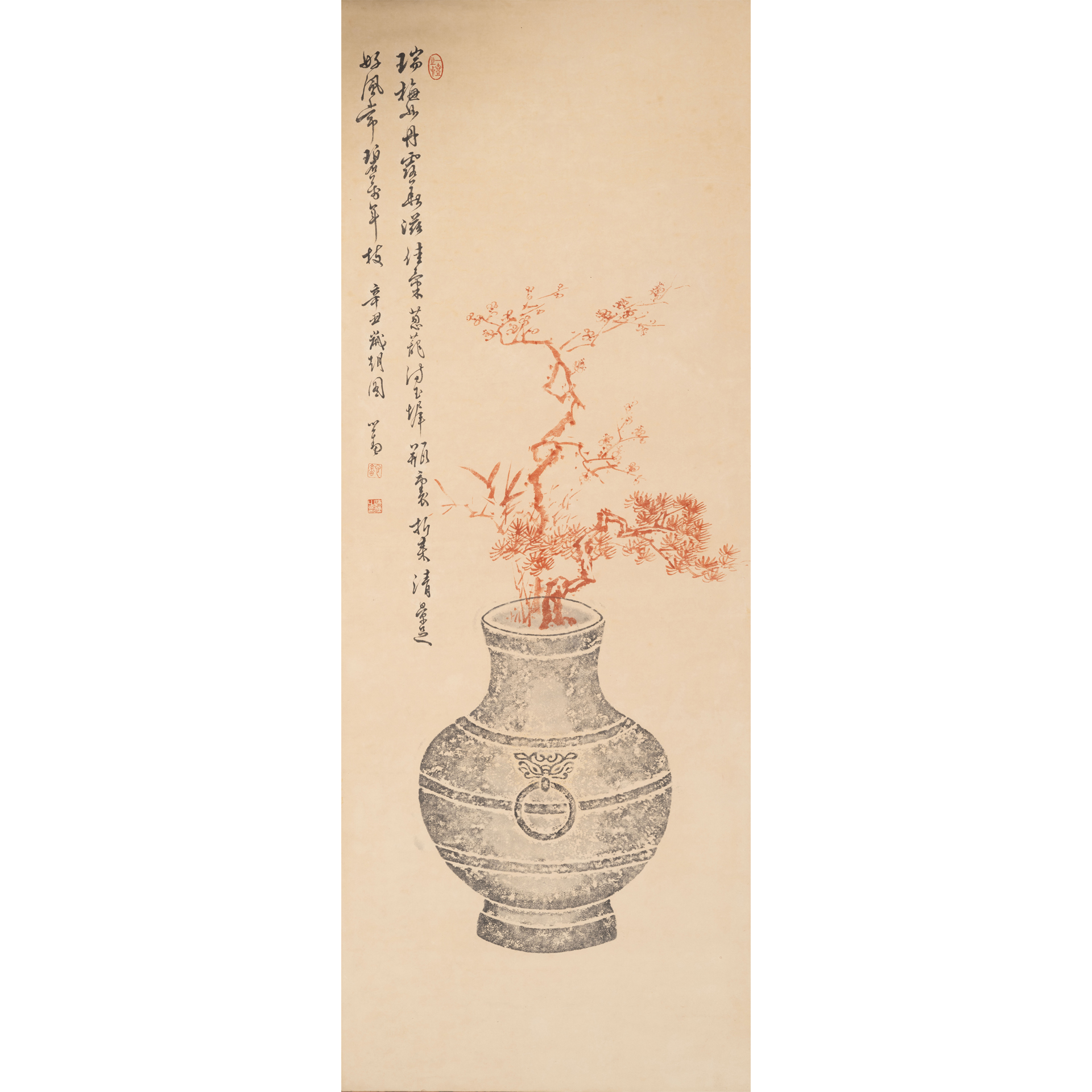 LOT 048 Pu Ru,Auspicious Plum Blossom Painting in Cinnabar