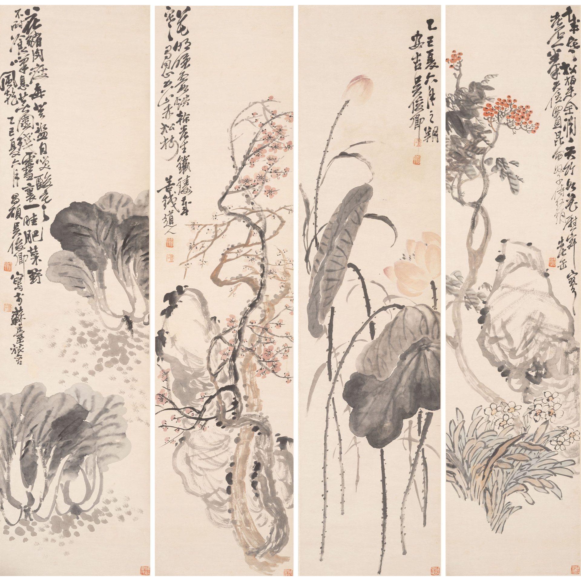 LOT 081 Wu Changshuo,Four-panel Screen of Flower Paintings